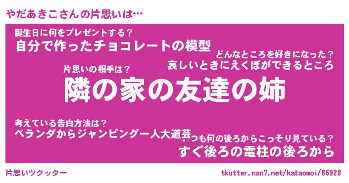 | 胡散臭い通販商品みたいなあだ名 | 『必ず成功する霊験あらたかなお札…その名も「やだあきこ」』 |