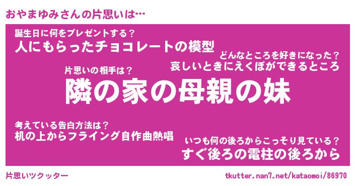 | 恥ずかしいあだ名 | 『プリティーおやまゆみ』『おやっちょ』 |