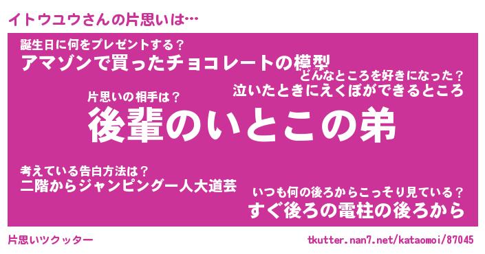 | ヘコむあだ名 | 『イトもー』『なまこ酢』『イト太郎』 |