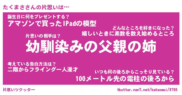 | 意味不明あだ名 | 『ペロリンたくまさ』『永久保存たくまさ』 |