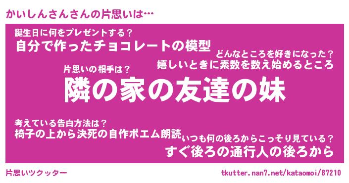 | ヘコむあだ名 | 『かいっふぃ~』『つくし』『かいお』 |