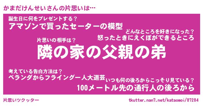 | 男性向けラノベタイトル風あだ名 | 『かまだけんせいの憂鬱』 |