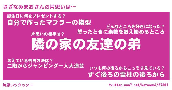 | 胡散臭い通販商品みたいなあだ名 | 『モテモテ間違いなし霊験あらたかなお札…その名も「さざなみまお」』 |