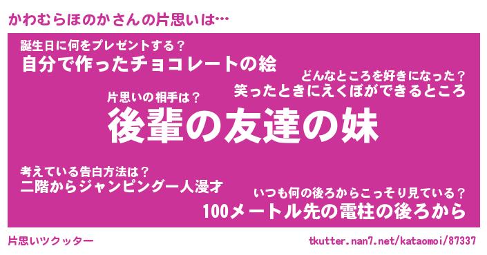 | 恥ずかしいあだ名 | 『プリティーかわむらほのか』『かわちん』 |