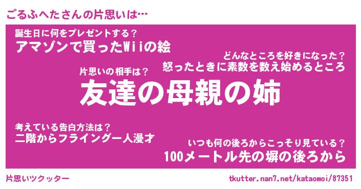 | ヘコむあだ名 | 『ごるにー』『つくし』『ごる太郎』 |