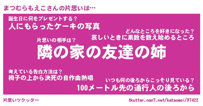 | 肩書あだ名 | 『まつむらもえこ御曹司』 |