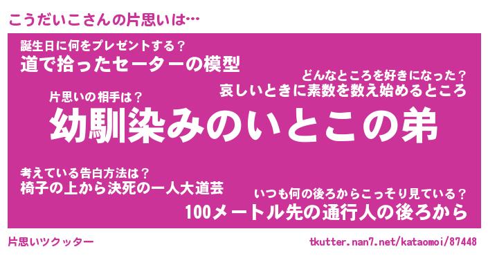 | 男性向けラノベタイトル風あだ名 | 『こうだいこの憂鬱』 |