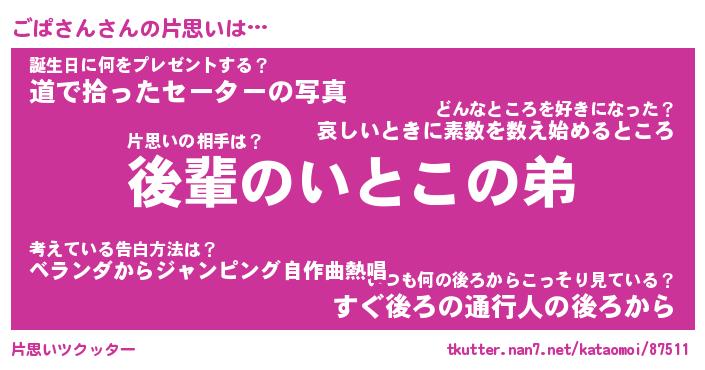 | 2回繰り返すあだ名 | 『ごぱごぱ』『ごごぱぱ』『ごたごた』 |
