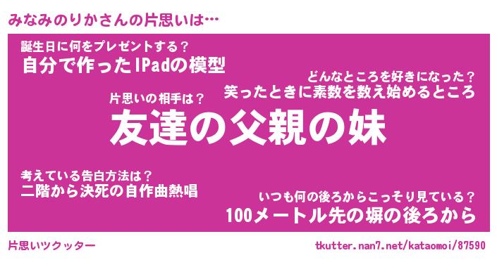 | ヘコむあだ名 | 『みなふぇ~』『つくし』『みなっ子』 |