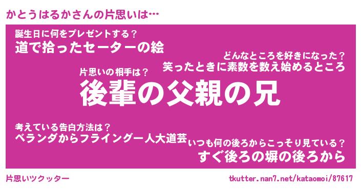 | 胡散臭い通販商品みたいなあだ名 | 『モテモテ間違いなし水晶球…その名も「かとうはるか」』 |