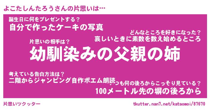 | 男性向けラノベタイトル風あだ名 | 『よこたしんたろうの憂鬱』 |