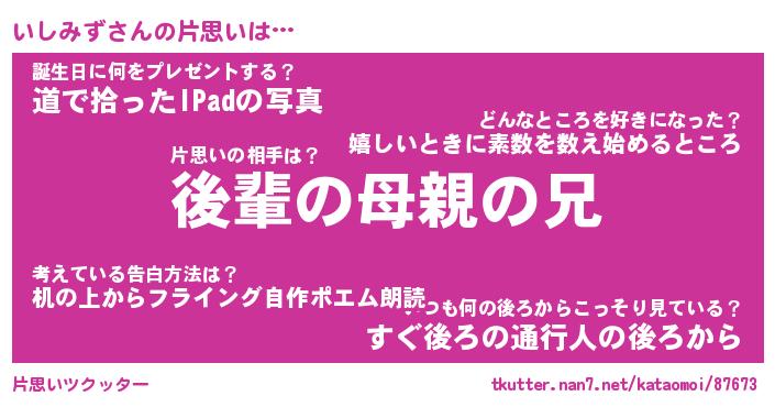 | ファンタジー風あだ名 | 『イシフェル』『エターナルイシミズー』 |