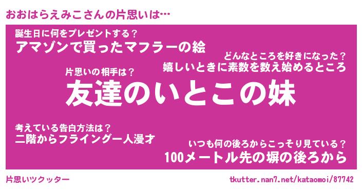 | ツイッター | おおはらえみこさんのツイッターID『fukuyoka_idle』 |