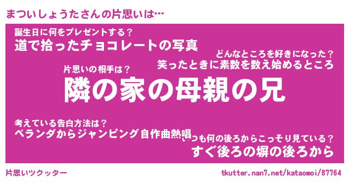 | 男性向けラノベタイトル風あだ名 | 『まついしょうたの憂鬱』 |