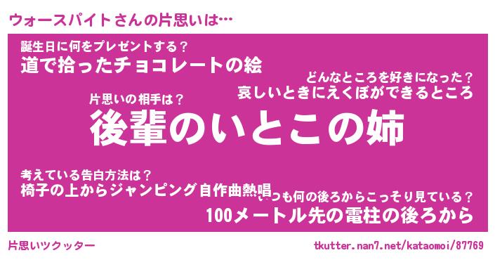 | ヘコむあだ名 | 『ウォもー』『牛乳』『ウォぷりん』 |