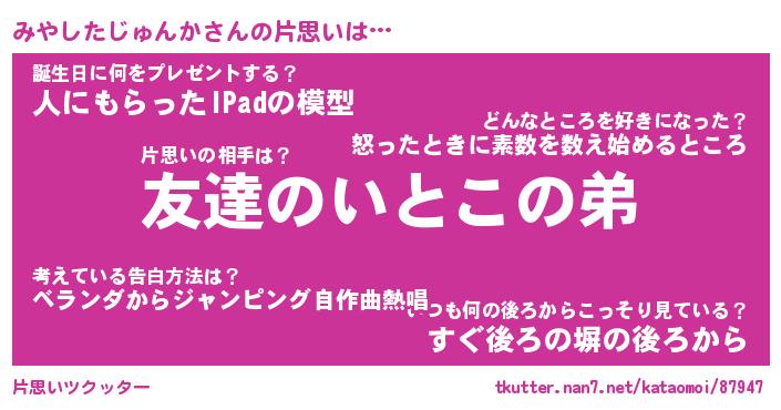 | 胡散臭い通販商品みたいなあだ名 | 『億万長者になれる霊験あらたかなお札…その名も「みやしたじゅんか」』 |
