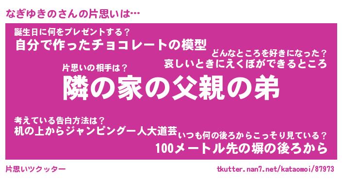 | ヘコむあだ名 | 『なぎにゅー』『つくし』『なぎっ子』 |