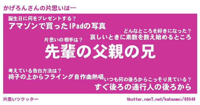 | 胡散臭い通販商品みたいなあだ名 | 『モテモテ間違いなし水晶球…その名も「かげろん」』 |