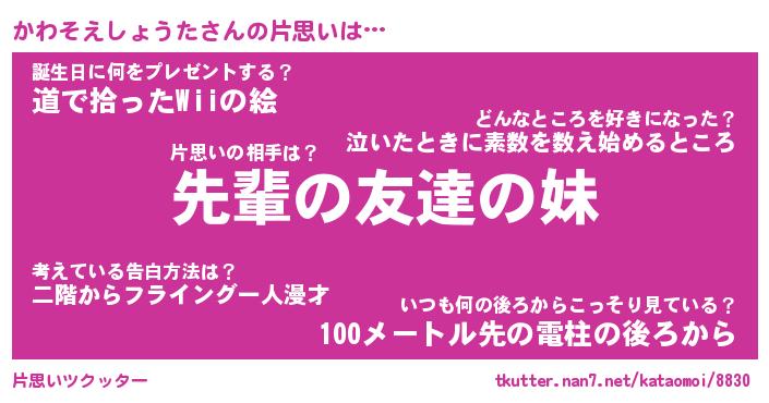 | 女子向けラノベタイトル風あだ名 | 『かわそえしょうた姫と円卓の騎士』 |