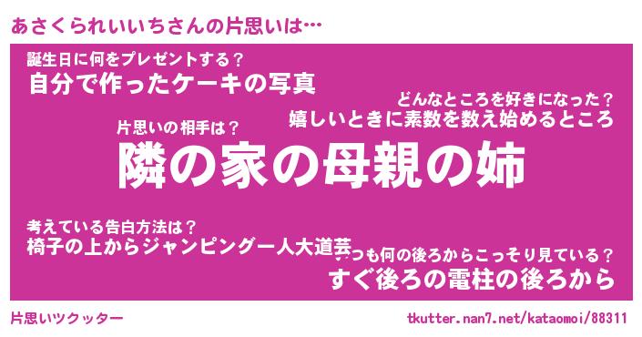 | ヘコむあだ名 | 『あさにー』『なまこ酢』『あさを』 |