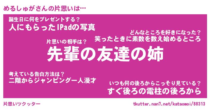 | ヘコむあだ名 | 『めるっふぃ~』『牛乳』『めるっ子』 |