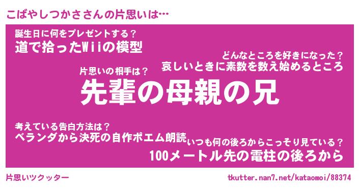 | 胡散臭い通販商品みたいなあだ名 | 『モテモテ間違いなしブレスレット…その名も「こばやしつかさ」』 |
