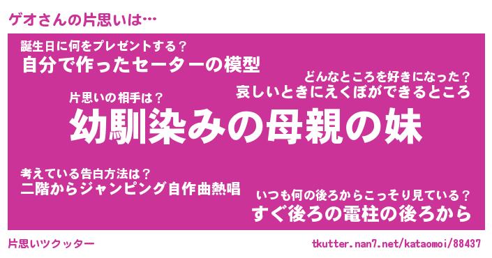 | 2回繰り返すあだ名 | 『ゲオゲオ』『ゲゲオオ』『くぴくぴ』 |