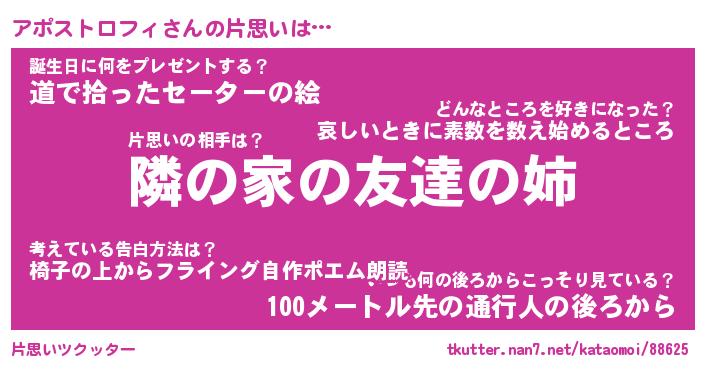 | 胡散臭い通販商品みたいなあだ名 | 『モテモテ間違いなし霊験あらたかなお札…その名も「アポストロフィ」』 |