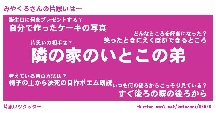 | ヒーロー風カッコイイあだ名 | 『スーパーミヤクロ』『暗黒騎士ミヤ』 |