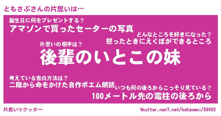 | 胡散臭い通販商品みたいなあだ名 | 『モテモテ間違いなし水晶球…その名も「ともさぶ」』 |