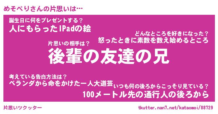 | 意味不明あだ名 | 『ペロリンめそぺり』『永久保存めそぺり』 |