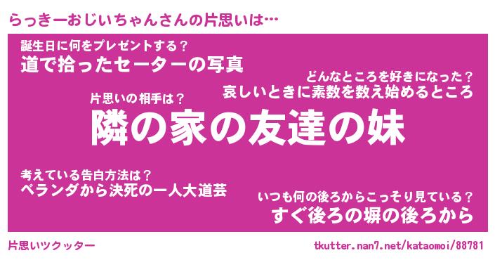 | 胡散臭い通販商品みたいなあだ名 | 『必ず成功する霊験あらたかなお札…その名も「らっきーおじいちゃん」』 |