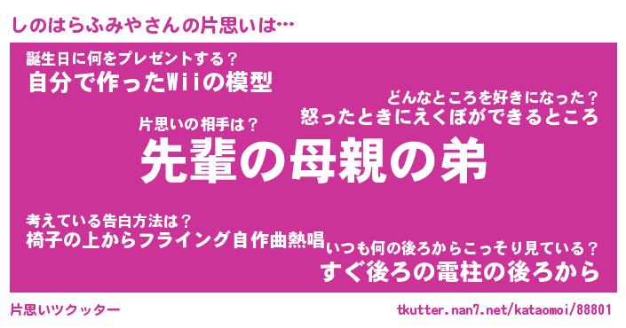 | ヘコむあだ名 | 『しのにー』『豆乳』『しのっぺ』 |