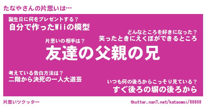 | ヘコむあだ名 | 『たなにゅー』『つくし』『たなお』 |