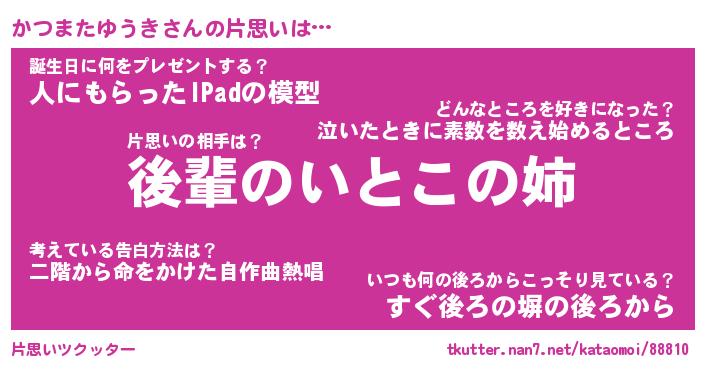 | ポケモン風あだ名 | 『カツチュウ』『カツマダネ』 |
