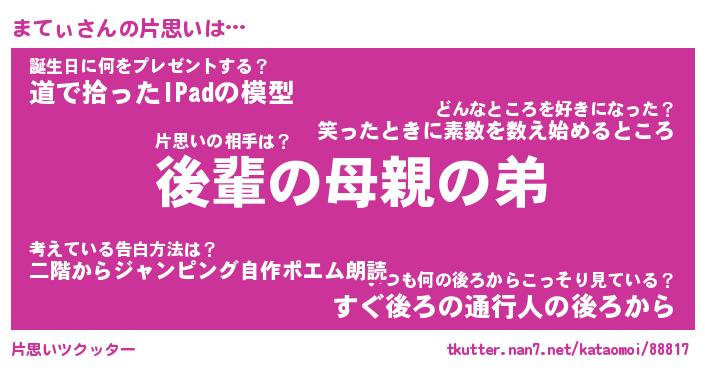 | ヘコむあだ名 | 『まてにー』『豆乳』『まてっちょ』 |