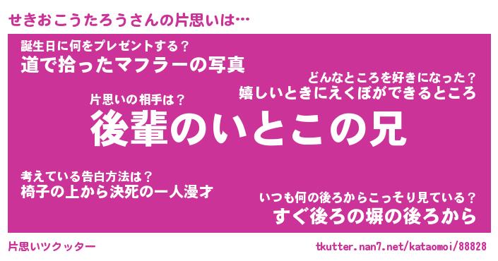 | ヒーロー風カッコイイあだ名 | 『スーパーセキオコウタロウ』 |