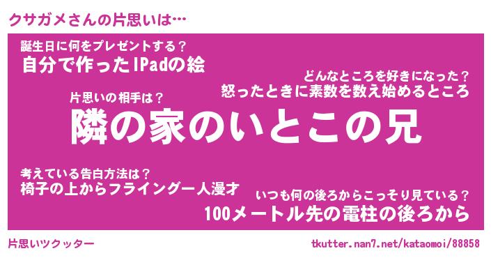| 胡散臭い通販商品みたいなあだ名 | 『モテモテ間違いなし水晶球…その名も「クサガメ」』 |