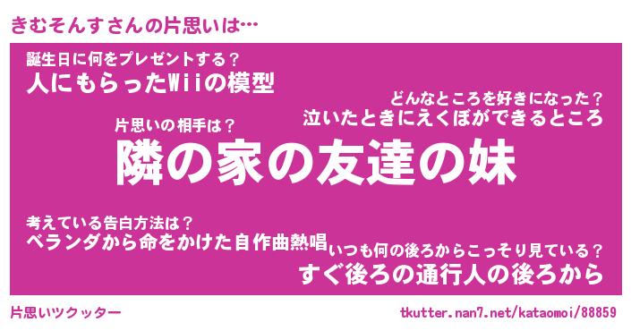 | ヘコむあだ名 | 『きむっふぃ~』『つくし』 |