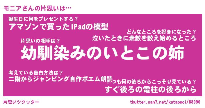 | ヘコむあだ名 | 『モニにゅー』『つくし』『モニを』 |