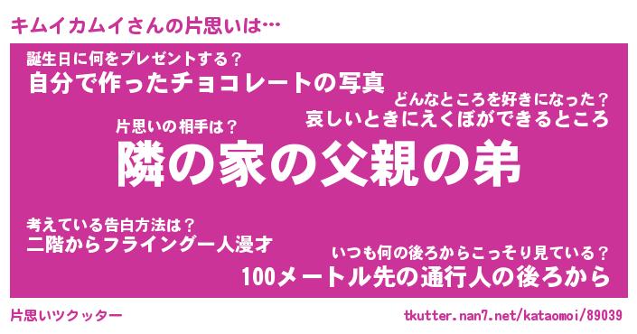 | 男性向けラノベタイトル風あだ名 | 『キムイカムイの憂鬱』 |