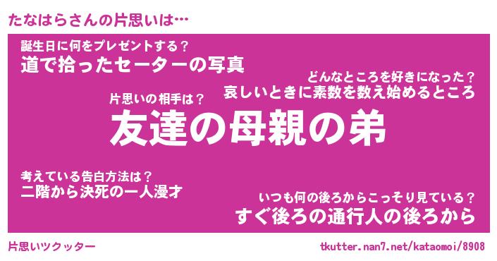 | 胡散臭い通販商品みたいなあだ名 | 『億万長者になれるブレスレット…その名も「たなはら」』 |