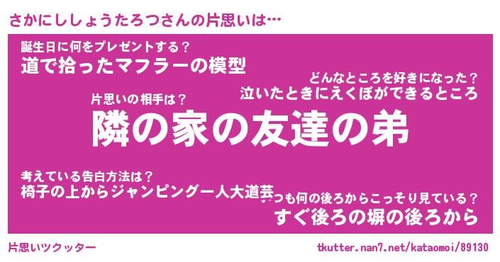 | 男性向けラノベタイトル風あだ名 | 『さかにししょうたろつの憂鬱』 |