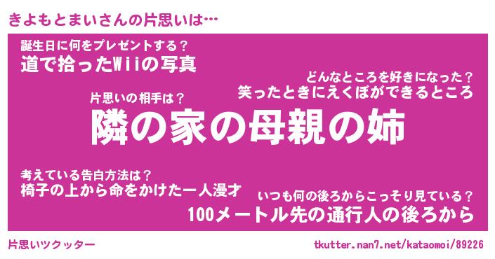 | 胡散臭い通販商品みたいなあだ名 | 『必ず成功するブレスレット…その名も「きよもとまい」』 |