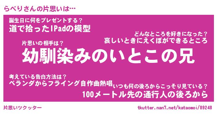 | ヘコむあだ名 | 『らべもー』『豆乳』『らべっちょ』 |