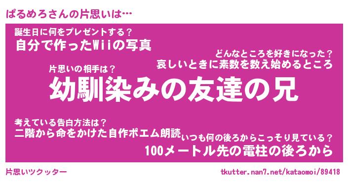 | 胡散臭い通販商品みたいなあだ名 | 『必ず成功する霊験あらたかなお札…その名も「ぱるめろ」』 |