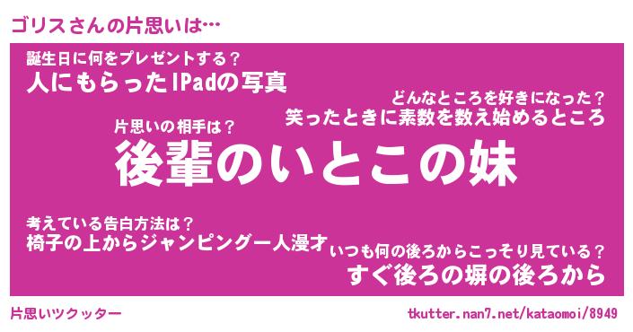 | 意味不明あだ名 | 『ペロリンゴリス』『ゴリスフォーエバー』 |
