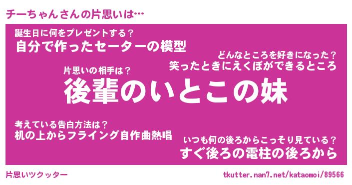 | ヘコむあだ名 | 『チーにゅー』『つくし』『チーを』 |