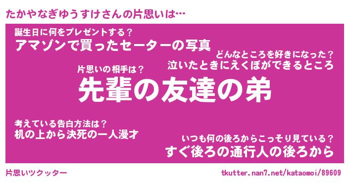 | 胡散臭い通販商品みたいなあだ名 | 『モテモテ間違いなし霊験あらたかなお札…その名も「たかやなぎゆうすけ」』 |