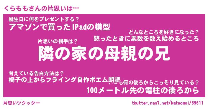 | 胡散臭い通販商品みたいなあだ名 | 『必ず成功するブレスレット…その名も「くらもも」』 |